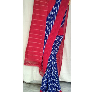 Return To ShopBlue and white double ikat patterned body with red solid borders