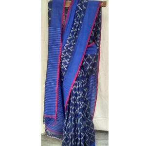 Black body with ikat motifs all over blue borders with red selvedge and blouse