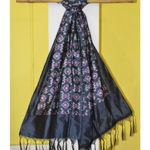 Handwoven Pure Silk Ikat Stole with tassels.