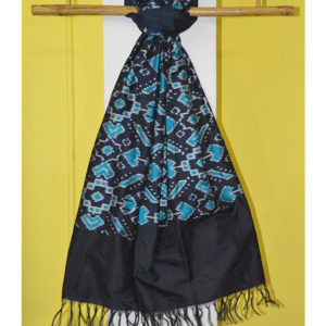 Handwoven Pure Silk Ikat Stole with tassels.