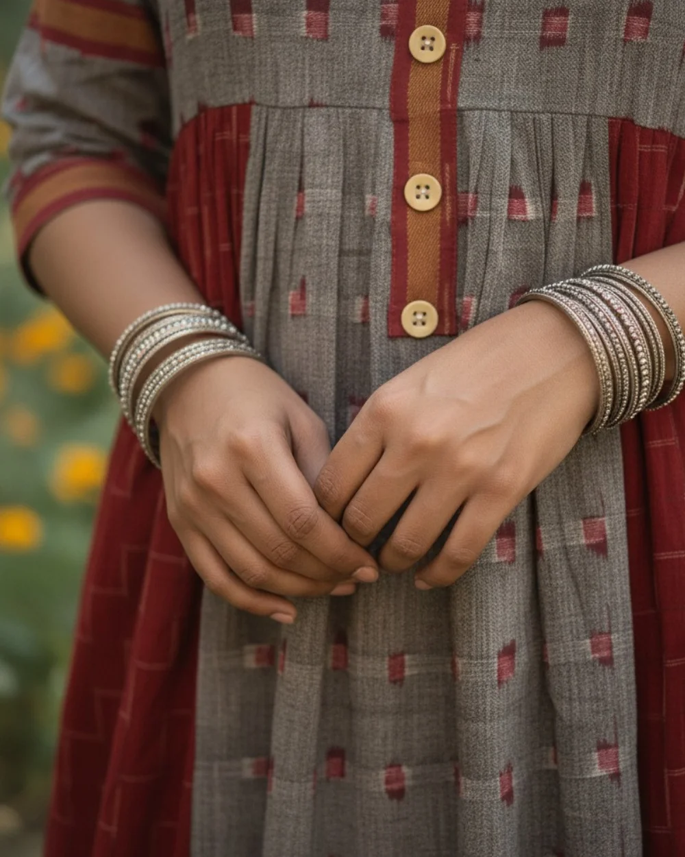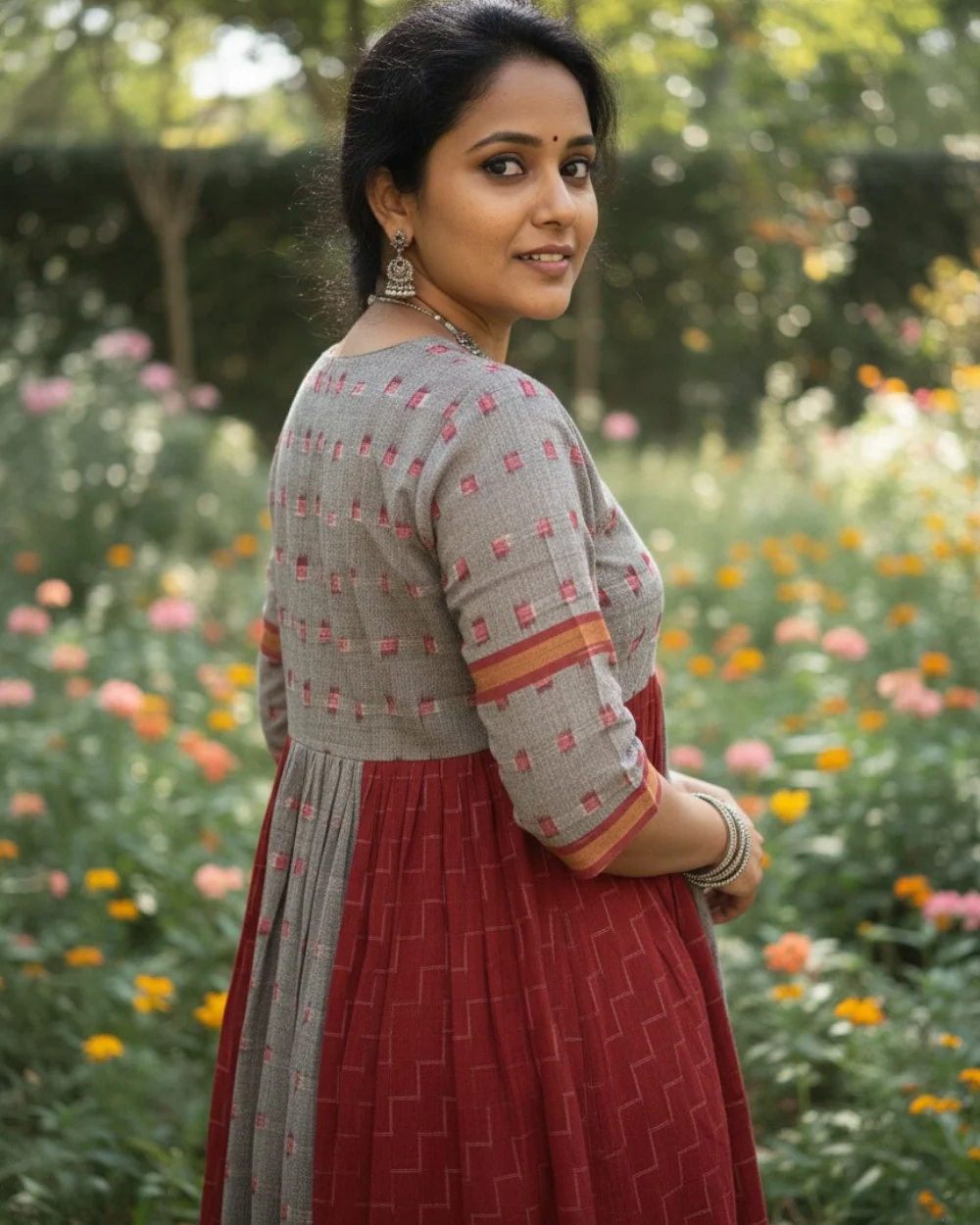 Khadi Madder – Hand Spun Red Brick And Earthy Beige Anarkali Kurti