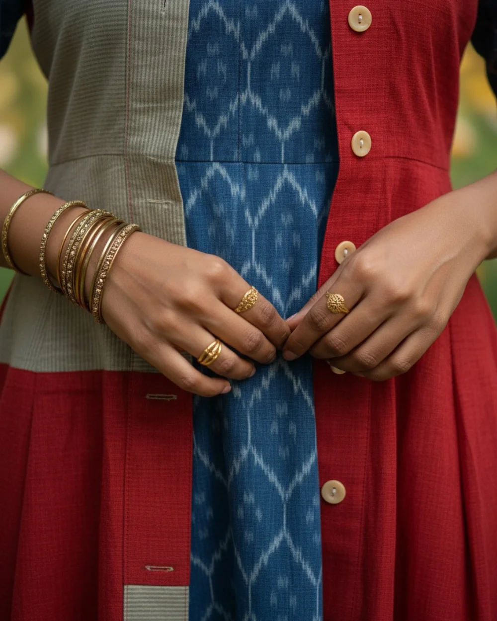 Red And Blue Cotton Ikat Kurta
