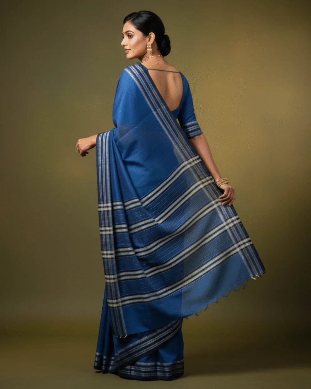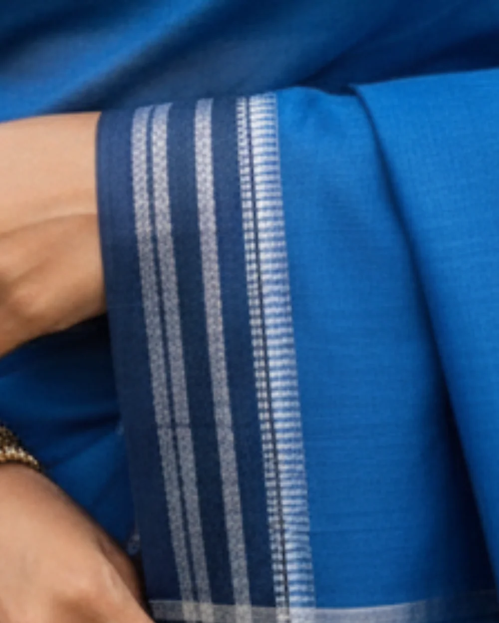 Blue 8O’s Count Cotton Narayanpet Saree Without Blouse