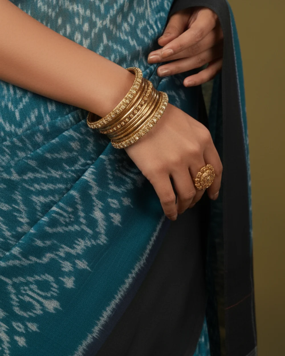 Be the first to review “Teal And Black Cotton Ikat Saree”